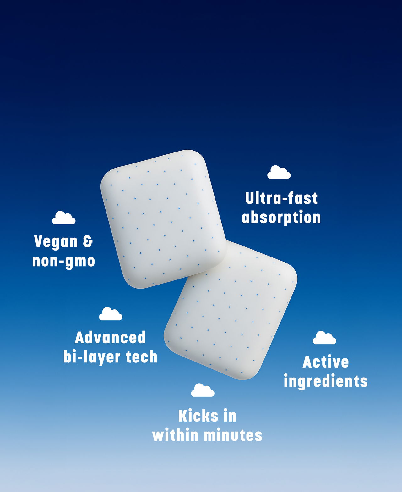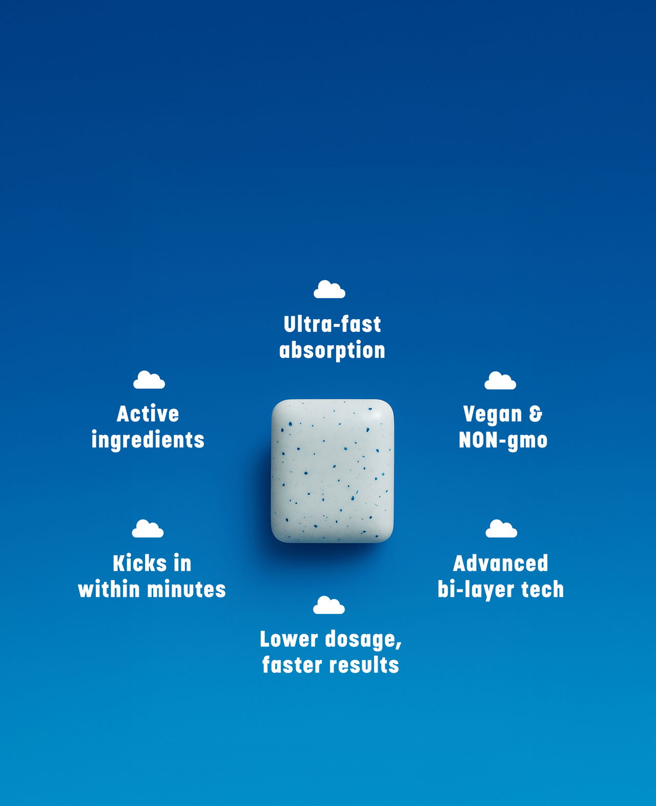 Most supplements are slow and messy — Clooudie isn’t. Our gums deliver active, science-backed ingredients through your mouth, not your stomach — so you feel it in minutes, not hours. Fast. Clean. Effective.