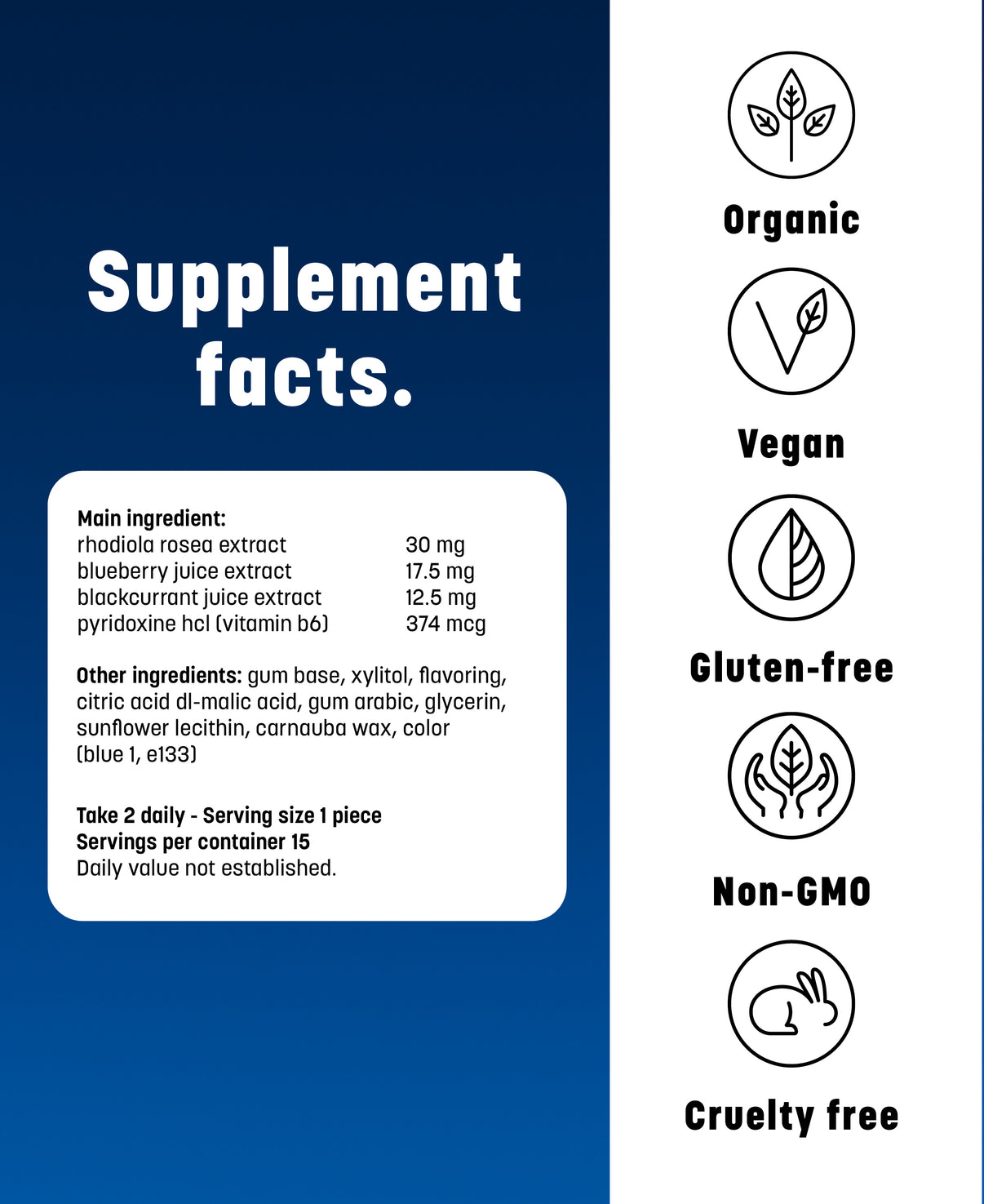 Chew 1–2 pieces whenever you need a focus boost up to 4 times per day.