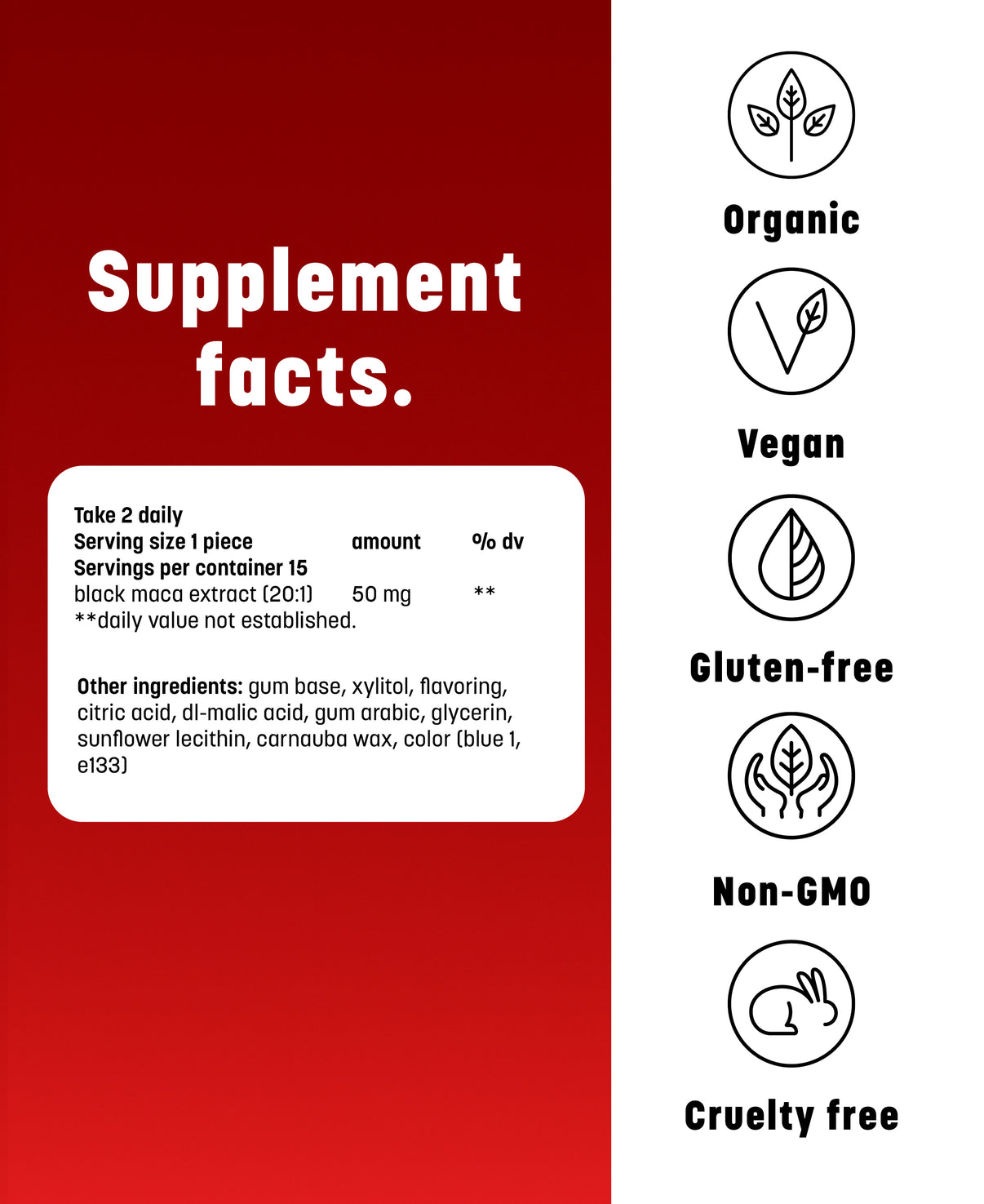 Meow Chewing Gum is powered by maca, a powerful adaptogenic root known for supporting libido, hormone balance, and natural energy.