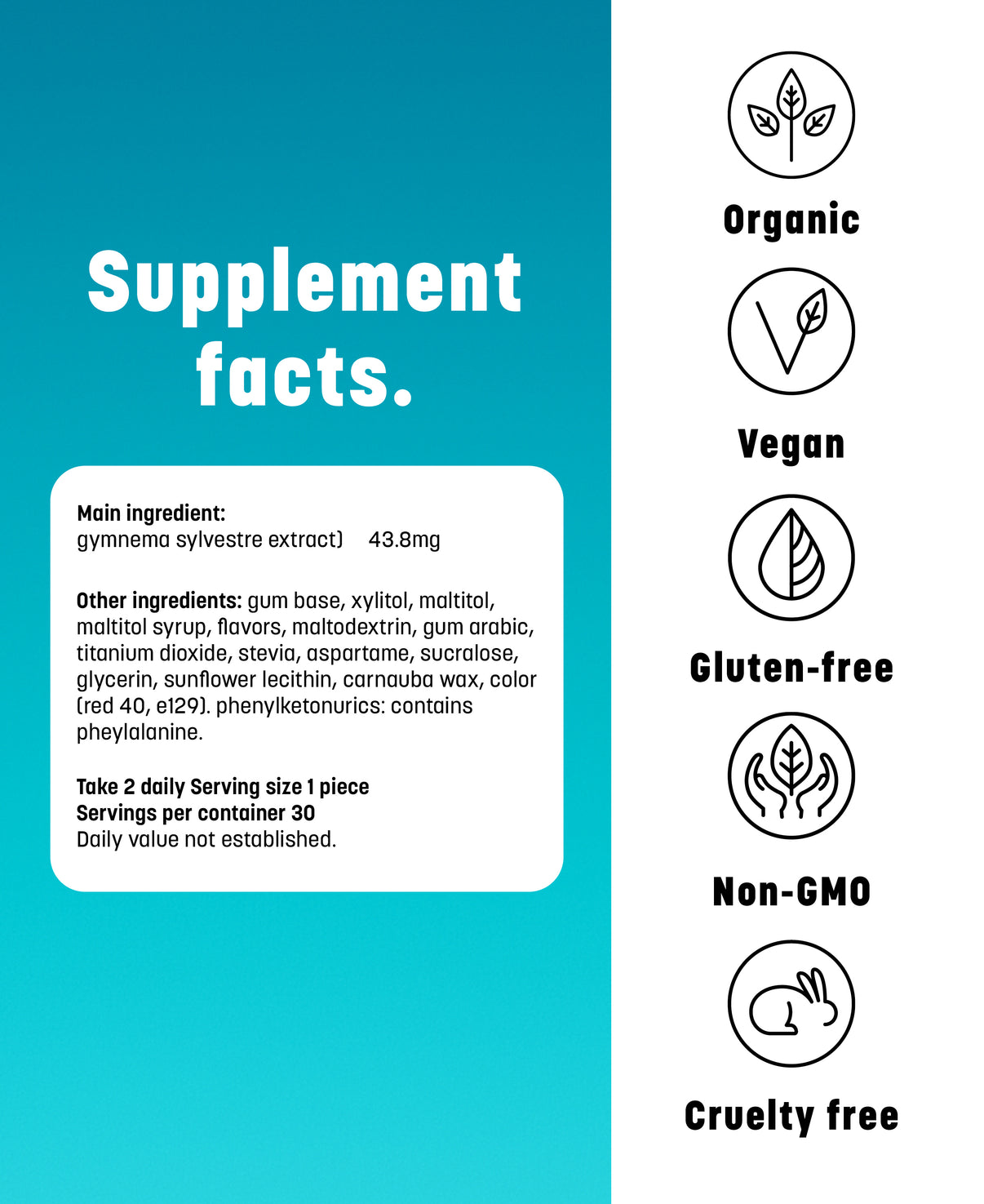 Taste-less gums discreetly dulls your taste buds, making sweets & junk food unappealing for hours. It also supports healthy blood sugar levels and improves glucose metabolism, helping your body manage sugar more efficiently.
